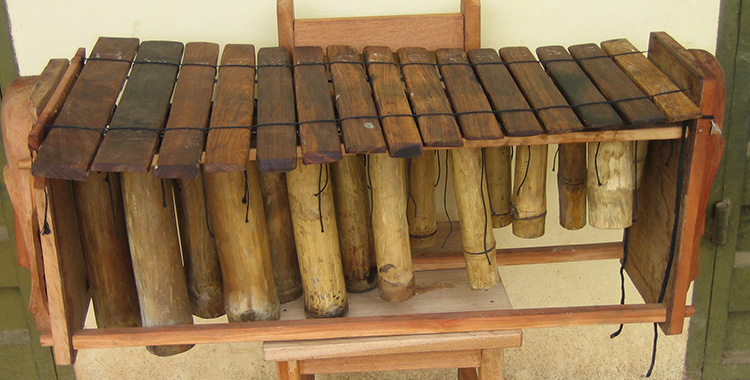 Handcrafted wooden balafons tuned traditionally and supported by calabash resonators for rich, earthy tones.